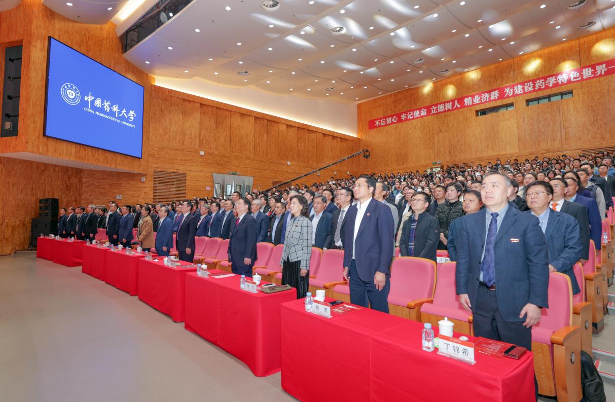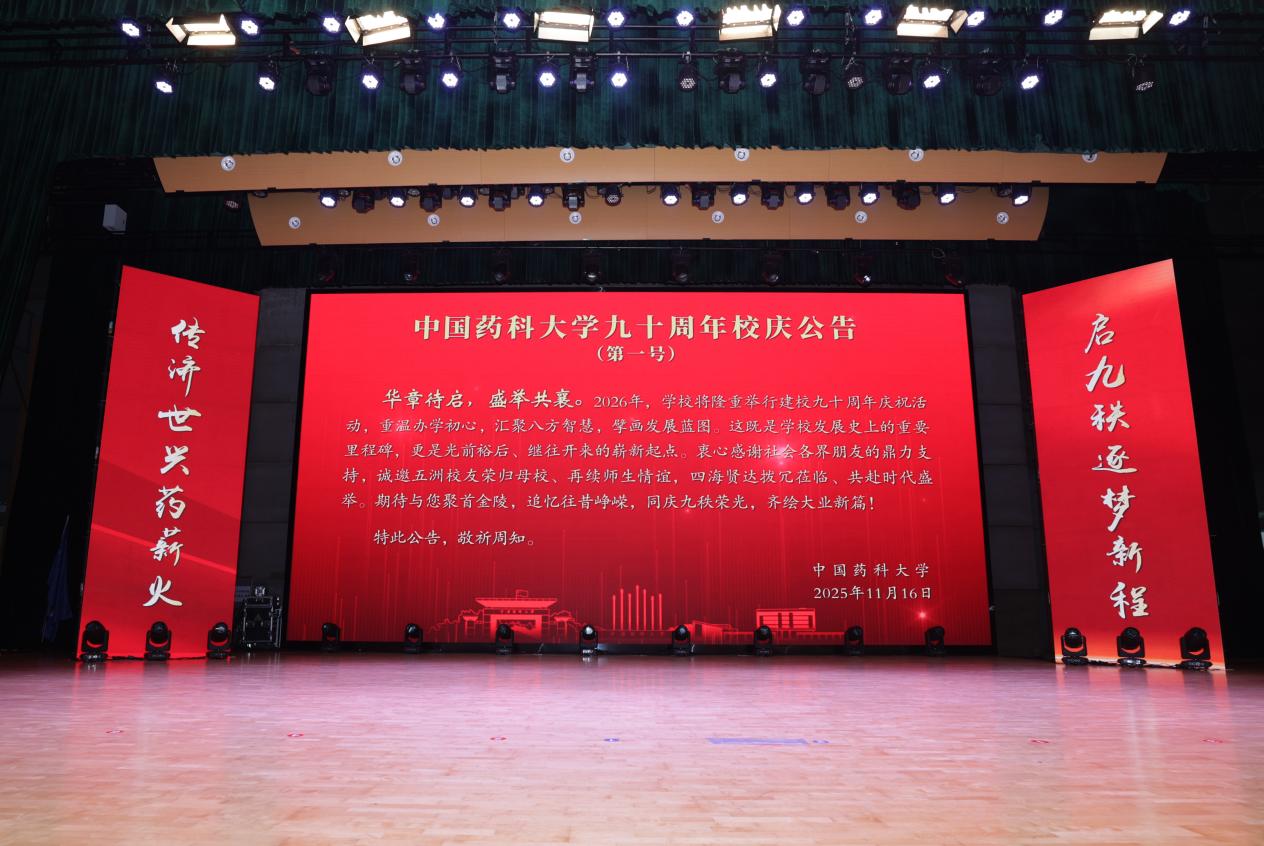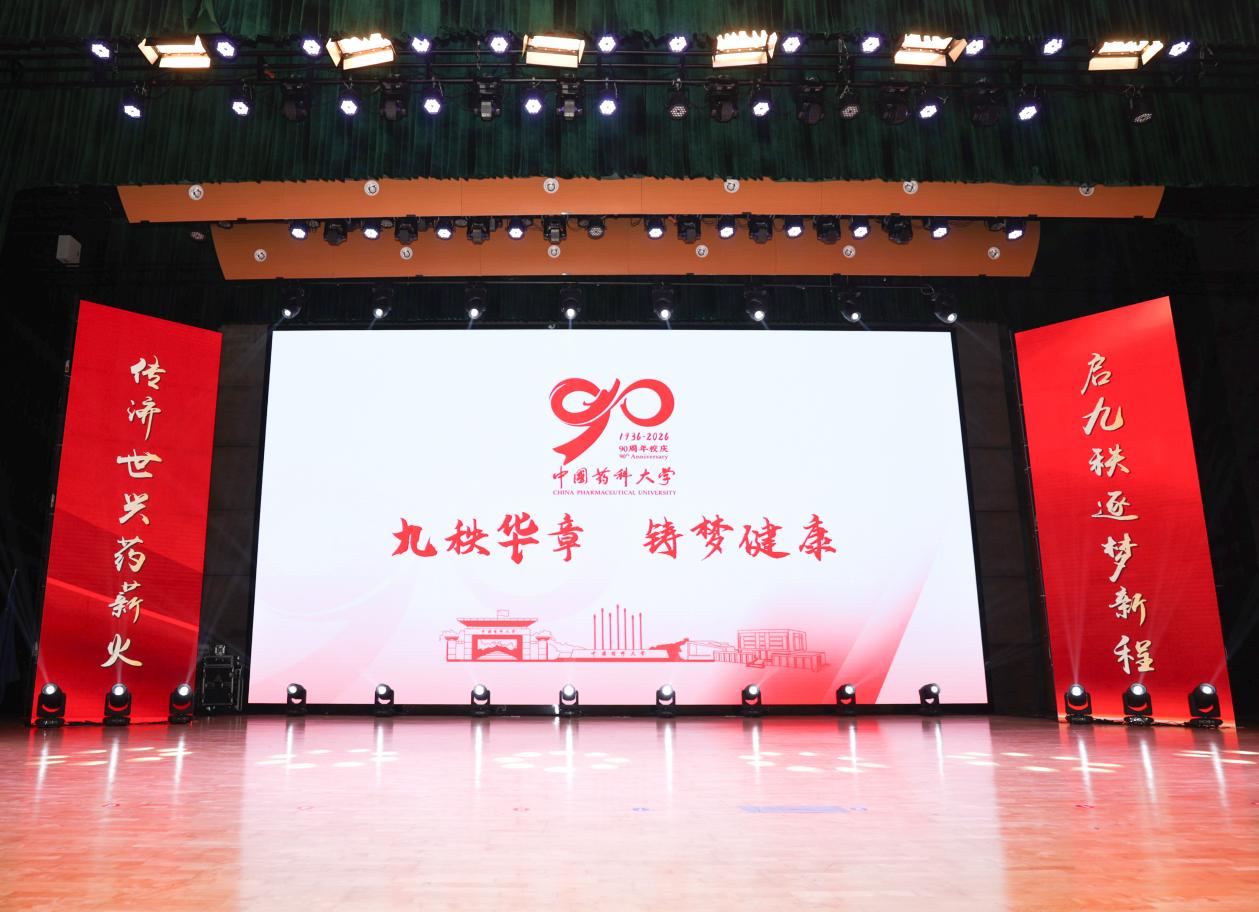 兴药强国,铸梦健康。11月16日,中国药科大学90周年校庆倒计时一周年启动仪式在江宁校区大礼堂隆重举行。中国工程院院士王广基教授、江苏恒瑞医药董事长孙飘扬先生等校友代表、全体在宁校领导、近期退出班子的校领导、全体中层干部、党支部书记、教研室主任、民主党派负责人、无党派人士代表、师生代表等在大礼堂参与仪式。本次活动还通过新华网等网络平台同步直播,全校师生员工、海内外校友和关心支持学校建设与发展的各界人士等共计150余万人相聚线上,共襄盛会。启动仪式由校长郝海平主持。