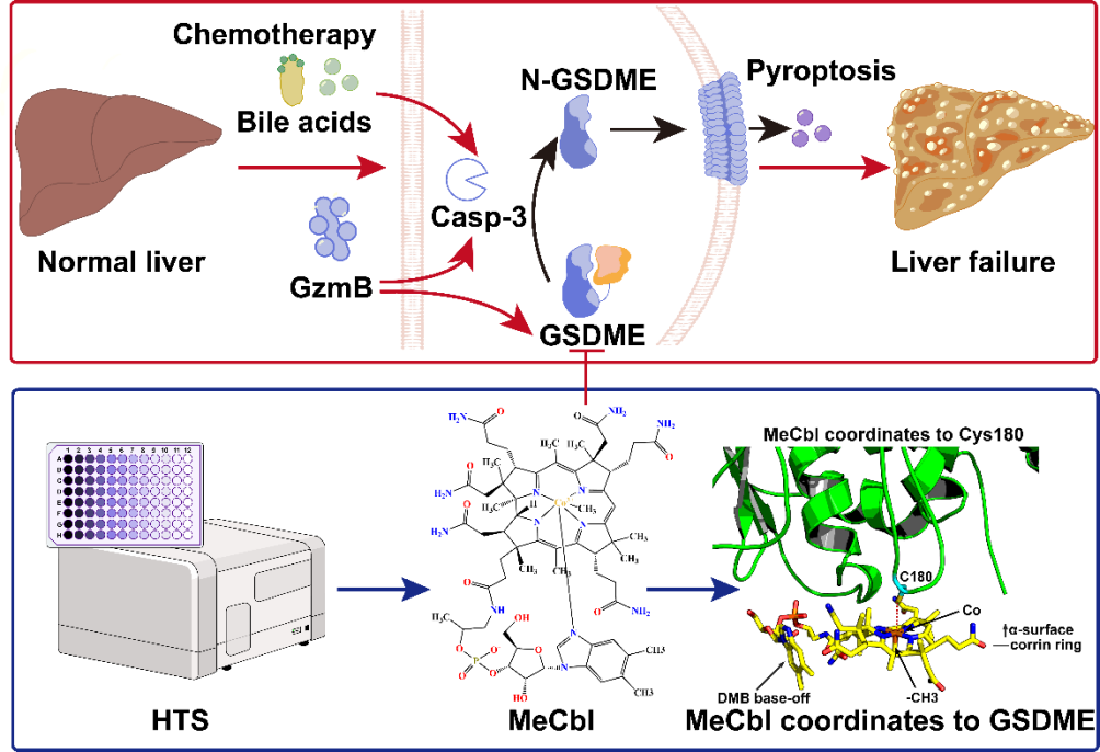 近日,我校郝海平教授团队在Nature Communications上在线发表了题为“Methylcobalamin protects against liver failure via engaging gasdermin E”的研究论文,发现内源性维生素B12甲钴胺是靶向GSDME的特异性抑制剂,能有效干预GSDME介导的肝衰竭。多靶标天然药物全国重点实验室曹丽娟研究员、药学院郝海平教授、孙慧涌特聘副研究员为本文共同通讯作者,药学院许万峰特聘研究员、王赟博士、崔双特聘副研究员和郑秋凌副教授为共同第一作者,中国药科大学为第一通讯单位。