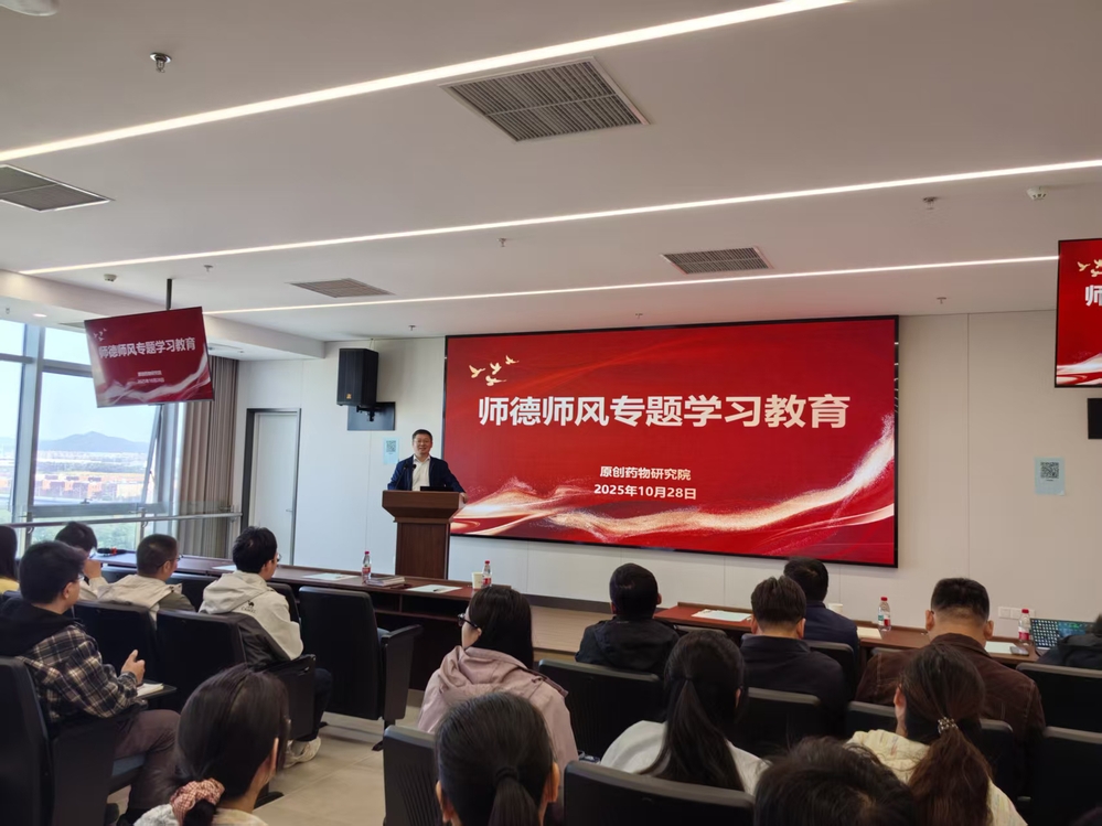 10月28日,我校原创药物研究院召开全院教职工大会,专题开展师德师风学习教育,全体院领导、全院教职工参加。