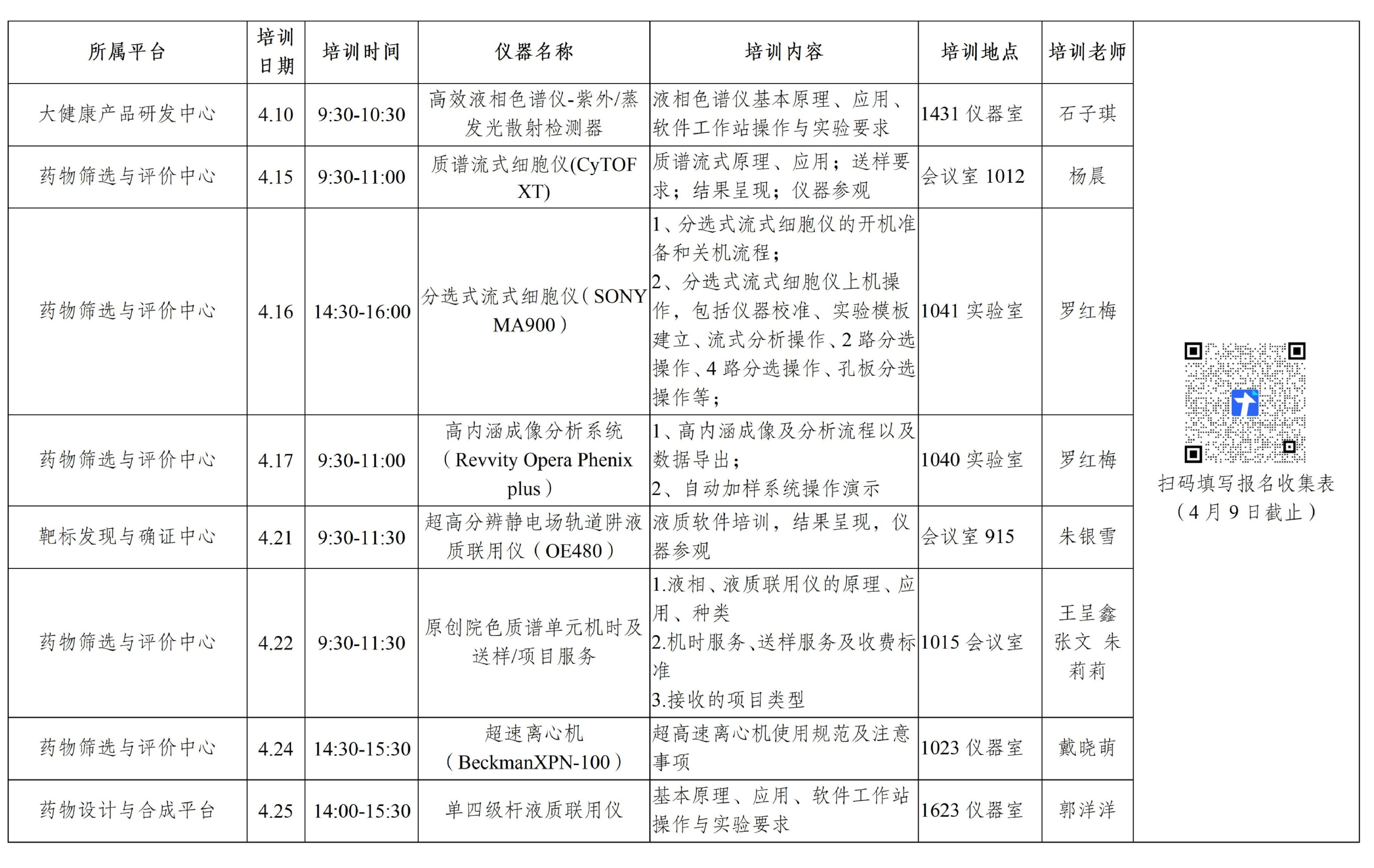原创药物研究院开放共享仪器2026年4月操作培训如下: